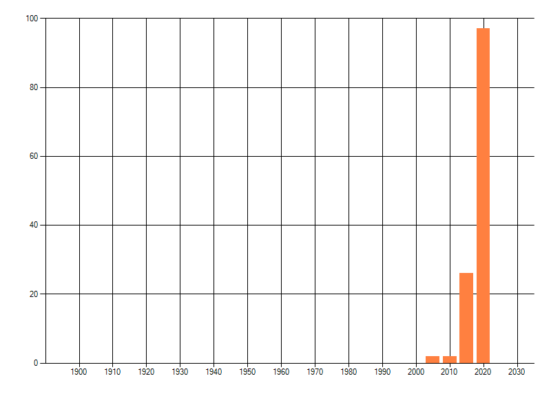 Het aantal atlasblokken (5x5 km) waarin de soort is gemeld binnen een periode van vijf jaar (vanaf 1980) of twintig jaar. Niet gecorrigeerd voor waarnemersinspanning en het aantal doorgegeven waarnemingen kan sterk variëren per periode, dus een trend in verspreiding kan hier niet direct uit worden afgelezen. Het opgegeven jaartal is het eerste jaar van de periode. Bron: gevalideerde waarnemingen uit de NDFF.