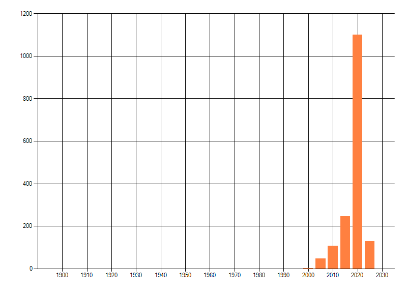 Het aantal atlasblokken (5x5 km) waarin de soort is gemeld binnen een periode van vijf jaar (vanaf 1980) of twintig jaar. Niet gecorrigeerd voor waarnemersinspanning en het aantal doorgegeven waarnemingen kan sterk variëren per periode, dus een trend in verspreiding kan hier niet direct uit worden afgelezen. Het opgegeven jaartal is het eerste jaar van de periode. Bron: gevalideerde waarnemingen uit de NDFF.