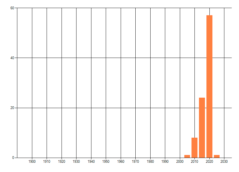 Het aantal atlasblokken (5x5 km) waarin de soort is gemeld binnen een periode van vijf jaar (vanaf 1980) of twintig jaar. Niet gecorrigeerd voor waarnemersinspanning en het aantal doorgegeven waarnemingen kan sterk variëren per periode, dus een trend in verspreiding kan hier niet direct uit worden afgelezen. Het opgegeven jaartal is het eerste jaar van de periode. Bron: gevalideerde waarnemingen uit de NDFF.