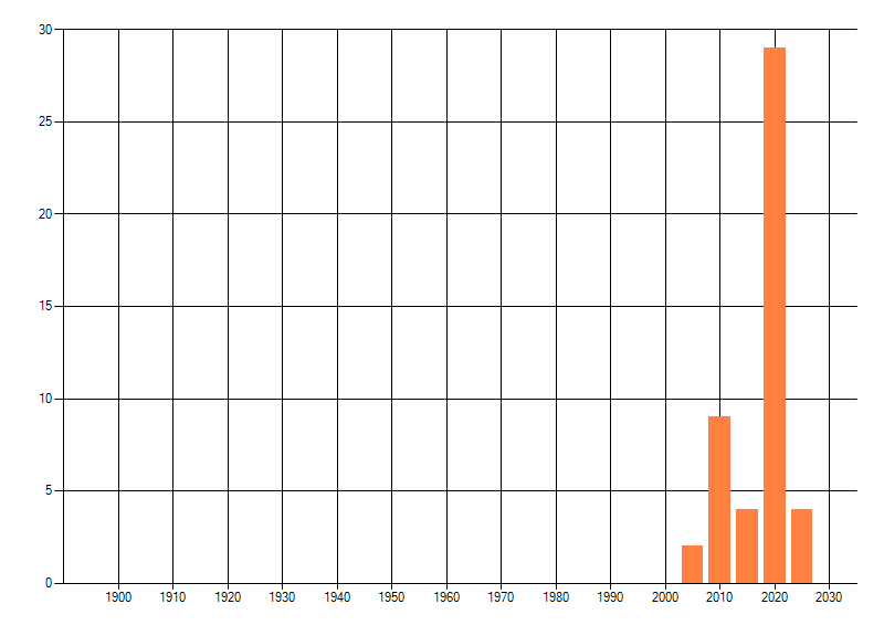 Het aantal atlasblokken (5x5 km) waarin de soort is gemeld binnen een periode van vijf jaar (vanaf 1980) of twintig jaar. Niet gecorrigeerd voor waarnemersinspanning en het aantal doorgegeven waarnemingen kan sterk variëren per periode, dus een trend in verspreiding kan hier niet direct uit worden afgelezen. Het opgegeven jaartal is het eerste jaar van de periode. Bron: gevalideerde waarnemingen uit de NDFF.