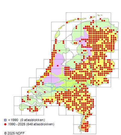 Bron: FLORON - Gemodelleerd op basis van waarnemingen uit de NDFF voor de periode 2000-2021.