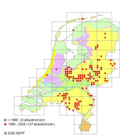 Bron: FLORON - Gemodelleerd op basis van waarnemingen uit de NDFF voor de periode 2000-2021.