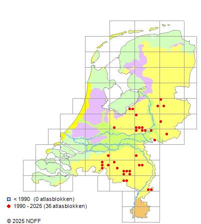 Bron: FLORON - Gemodelleerd op basis van waarnemingen uit de NDFF voor de periode 2000-2021.