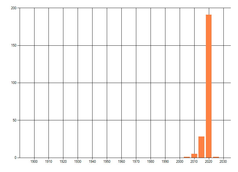 Het aantal atlasblokken (5x5 km) waarin de soort is gemeld binnen een periode van vijf jaar (vanaf 1980) of twintig jaar. Niet gecorrigeerd voor waarnemersinspanning en het aantal doorgegeven waarnemingen kan sterk variëren per periode, dus een trend in verspreiding kan hier niet direct uit worden afgelezen. Het opgegeven jaartal is het eerste jaar van de periode. Bron: gevalideerde waarnemingen uit de NDFF.