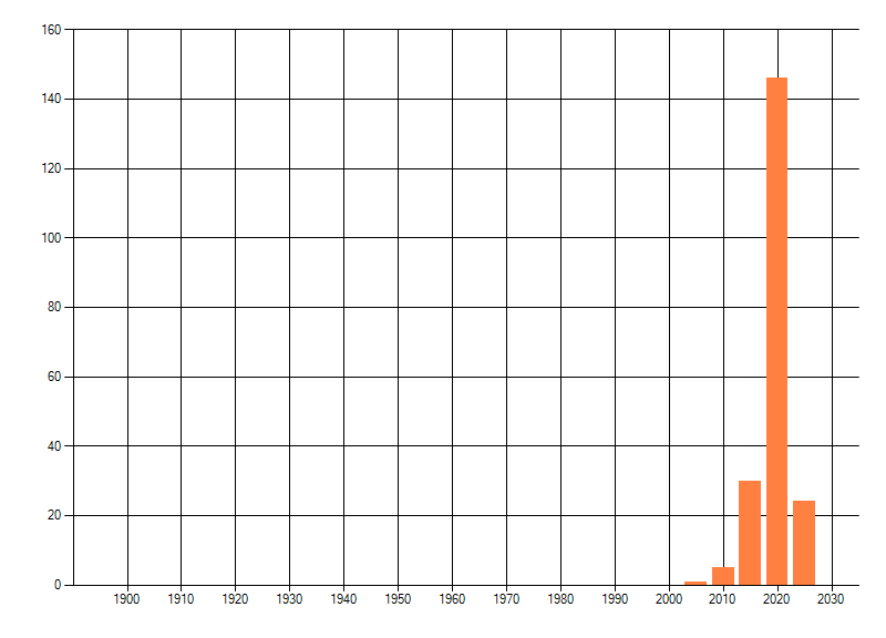 Het aantal atlasblokken (5x5 km) waarin de soort is gemeld binnen een periode van vijf jaar (vanaf 1980) of twintig jaar. Niet gecorrigeerd voor waarnemersinspanning en het aantal doorgegeven waarnemingen kan sterk variëren per periode, dus een trend in verspreiding kan hier niet direct uit worden afgelezen. Het opgegeven jaartal is het eerste jaar van de periode. Bron: gevalideerde waarnemingen uit de NDFF.