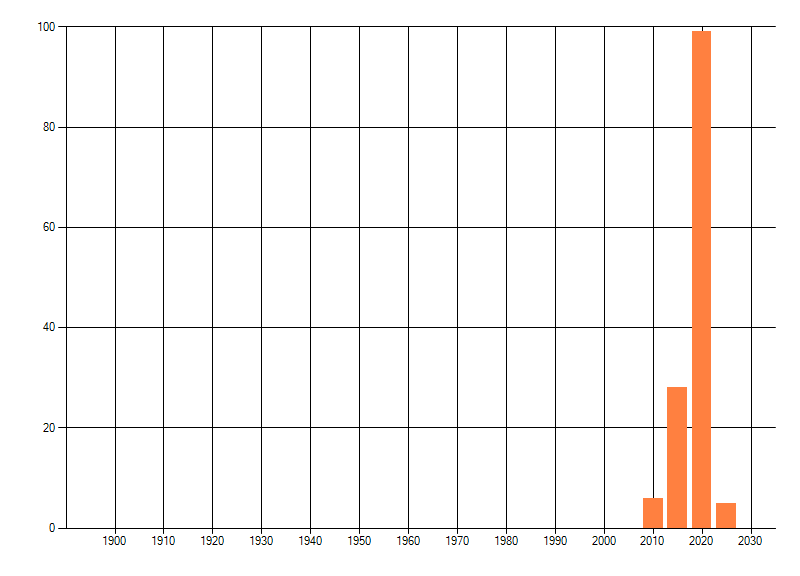 Het aantal atlasblokken (5x5 km) waarin de soort is gemeld binnen een periode van vijf jaar (vanaf 1980) of twintig jaar. Niet gecorrigeerd voor waarnemersinspanning en het aantal doorgegeven waarnemingen kan sterk variëren per periode, dus een trend in verspreiding kan hier niet direct uit worden afgelezen. Het opgegeven jaartal is het eerste jaar van de periode. Bron: gevalideerde waarnemingen uit de NDFF.