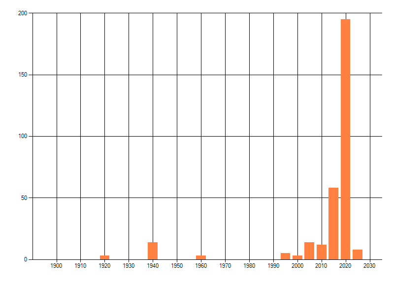Het aantal atlasblokken (5x5 km) waarin de soort is gemeld binnen een periode van vijf jaar (vanaf 1980) of twintig jaar. Niet gecorrigeerd voor waarnemersinspanning en het aantal doorgegeven waarnemingen kan sterk variëren per periode, dus een trend in verspreiding kan hier niet direct uit worden afgelezen. Het opgegeven jaartal is het eerste jaar van de periode. Bron: gevalideerde waarnemingen uit de NDFF.