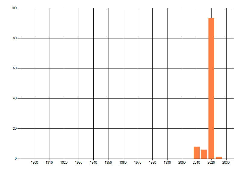 Het aantal atlasblokken (5x5 km) waarin de soort is gemeld binnen een periode van vijf jaar (vanaf 1980) of twintig jaar. Niet gecorrigeerd voor waarnemersinspanning en het aantal doorgegeven waarnemingen kan sterk variëren per periode, dus een trend in verspreiding kan hier niet direct uit worden afgelezen. Het opgegeven jaartal is het eerste jaar van de periode. Bron: gevalideerde waarnemingen uit de NDFF.