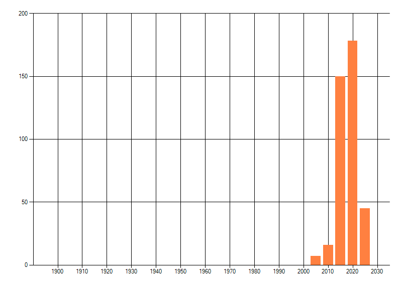 Het aantal atlasblokken (5x5 km) waarin de soort is gemeld binnen een periode van vijf jaar (vanaf 1980) of twintig jaar. Niet gecorrigeerd voor waarnemersinspanning en het aantal doorgegeven waarnemingen kan sterk variëren per periode, dus een trend in verspreiding kan hier niet direct uit worden afgelezen. Het opgegeven jaartal is het eerste jaar van de periode. Bron: gevalideerde waarnemingen uit de NDFF.