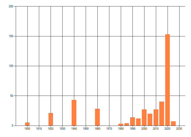 Het aantal atlasblokken (5x5 km) waarin de soort is gemeld binnen een periode van vijf jaar (vanaf 1980) of twintig jaar. Niet gecorrigeerd voor waarnemersinspanning en het aantal doorgegeven waarnemingen kan sterk variëren per periode, dus een trend in verspreiding kan hier niet direct uit worden afgelezen. Het opgegeven jaartal is het eerste jaar van de periode. Bron: gevalideerde waarnemingen uit de NDFF.