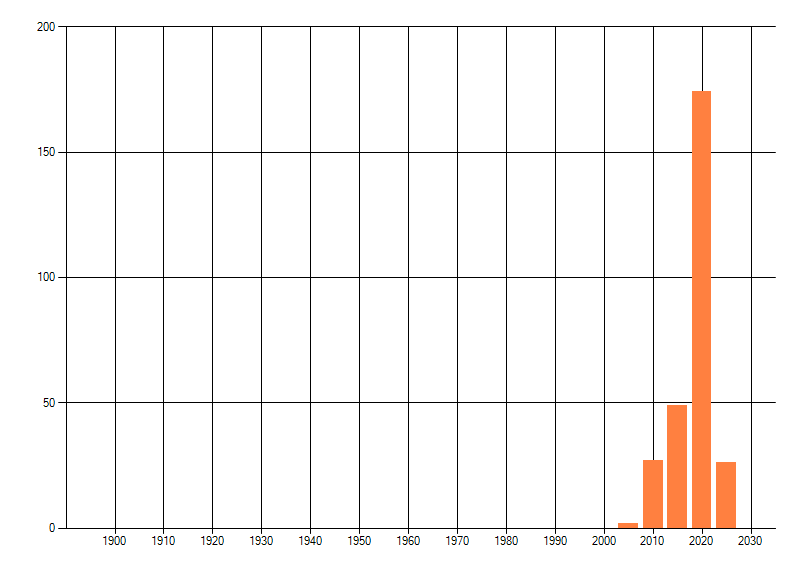 Het aantal atlasblokken (5x5 km) waarin de soort is gemeld binnen een periode van vijf jaar (vanaf 1980) of twintig jaar. Niet gecorrigeerd voor waarnemersinspanning en het aantal doorgegeven waarnemingen kan sterk variëren per periode, dus een trend in verspreiding kan hier niet direct uit worden afgelezen. Het opgegeven jaartal is het eerste jaar van de periode. Bron: gevalideerde waarnemingen uit de NDFF.
