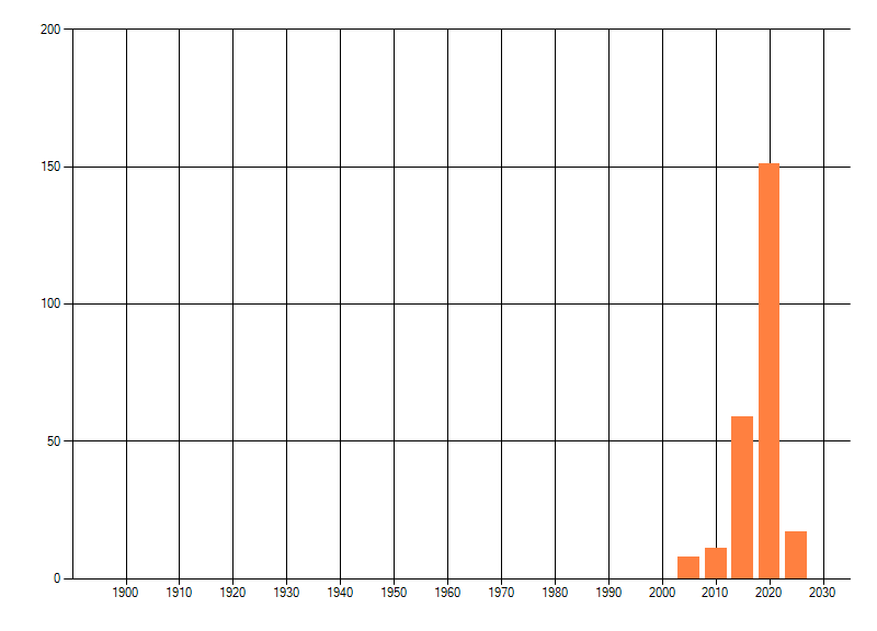 Het aantal atlasblokken (5x5 km) waarin de soort is gemeld binnen een periode van vijf jaar (vanaf 1980) of twintig jaar. Niet gecorrigeerd voor waarnemersinspanning en het aantal doorgegeven waarnemingen kan sterk variëren per periode, dus een trend in verspreiding kan hier niet direct uit worden afgelezen. Het opgegeven jaartal is het eerste jaar van de periode. Bron: gevalideerde waarnemingen uit de NDFF.