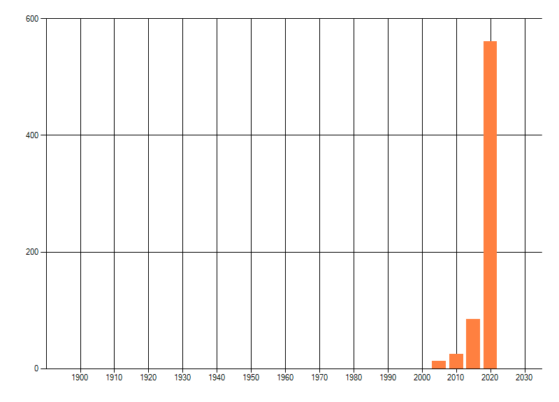 Het aantal atlasblokken (5x5 km) waarin de soort is gemeld binnen een periode van vijf jaar (vanaf 1980) of twintig jaar. Niet gecorrigeerd voor waarnemersinspanning en het aantal doorgegeven waarnemingen kan sterk variëren per periode, dus een trend in verspreiding kan hier niet direct uit worden afgelezen. Het opgegeven jaartal is het eerste jaar van de periode. Bron: gevalideerde waarnemingen uit de NDFF.