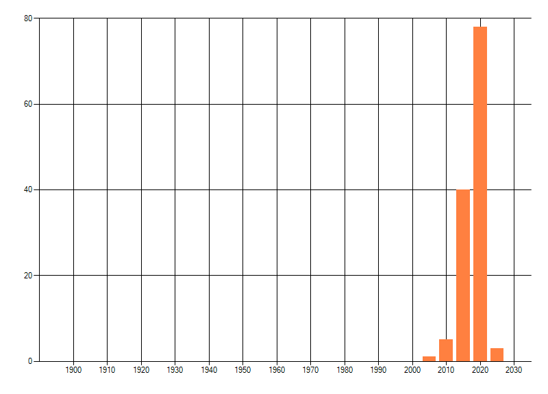 Het aantal atlasblokken (5x5 km) waarin de soort is gemeld binnen een periode van vijf jaar (vanaf 1980) of twintig jaar. Niet gecorrigeerd voor waarnemersinspanning en het aantal doorgegeven waarnemingen kan sterk variëren per periode, dus een trend in verspreiding kan hier niet direct uit worden afgelezen. Het opgegeven jaartal is het eerste jaar van de periode. Bron: gevalideerde waarnemingen uit de NDFF.