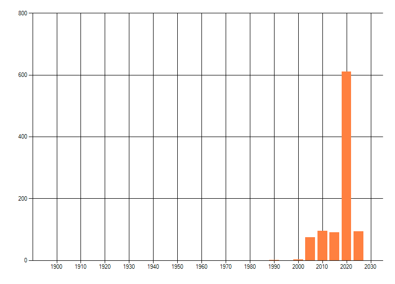 Het aantal atlasblokken (5x5 km) waarin de soort is gemeld binnen een periode van vijf jaar (vanaf 1980) of twintig jaar. Niet gecorrigeerd voor waarnemersinspanning en het aantal doorgegeven waarnemingen kan sterk variëren per periode, dus een trend in verspreiding kan hier niet direct uit worden afgelezen. Het opgegeven jaartal is het eerste jaar van de periode. Bron: gevalideerde waarnemingen uit de NDFF.