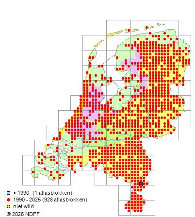 Bron: FLORON - Gemodelleerd op basis van waarnemingen uit de NDFF voor de periode 2000-2021.
