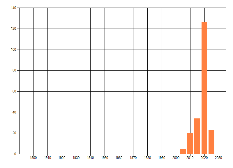 Het aantal atlasblokken (5x5 km) waarin de soort is gemeld binnen een periode van vijf jaar (vanaf 1980) of twintig jaar. Niet gecorrigeerd voor waarnemersinspanning en het aantal doorgegeven waarnemingen kan sterk variëren per periode, dus een trend in verspreiding kan hier niet direct uit worden afgelezen. Het opgegeven jaartal is het eerste jaar van de periode. Bron: gevalideerde waarnemingen uit de NDFF.