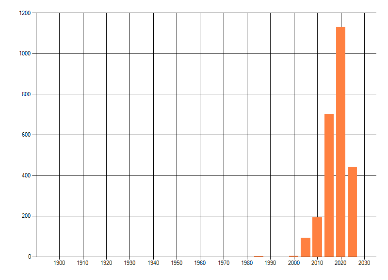 Het aantal atlasblokken (5x5 km) waarin de soort is gemeld binnen een periode van vijf jaar (vanaf 1980) of twintig jaar. Niet gecorrigeerd voor waarnemersinspanning en het aantal doorgegeven waarnemingen kan sterk variëren per periode, dus een trend in verspreiding kan hier niet direct uit worden afgelezen. Het opgegeven jaartal is het eerste jaar van de periode. Bron: gevalideerde waarnemingen uit de NDFF.