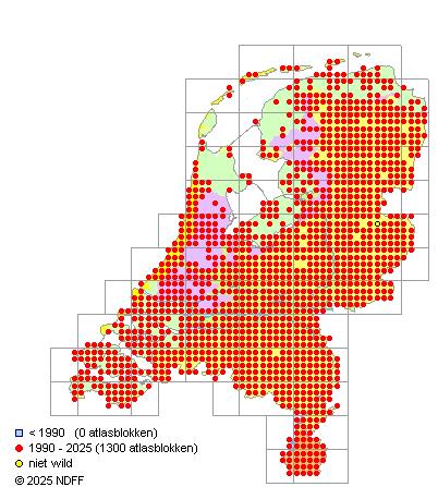 Bron: FLORON - Gemodelleerd op basis van waarnemingen uit de NDFF voor de periode 2000-2021.