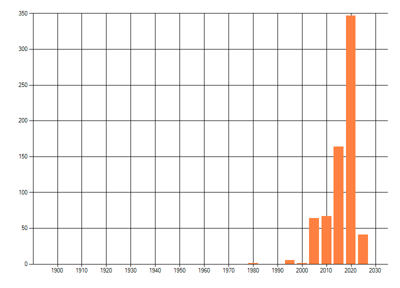 Het aantal atlasblokken (5x5 km) waarin de soort is gemeld binnen een periode van vijf jaar (vanaf 1980) of twintig jaar. Niet gecorrigeerd voor waarnemersinspanning en het aantal doorgegeven waarnemingen kan sterk variëren per periode, dus een trend in verspreiding kan hier niet direct uit worden afgelezen. Het opgegeven jaartal is het eerste jaar van de periode. Bron: gevalideerde waarnemingen uit de NDFF.