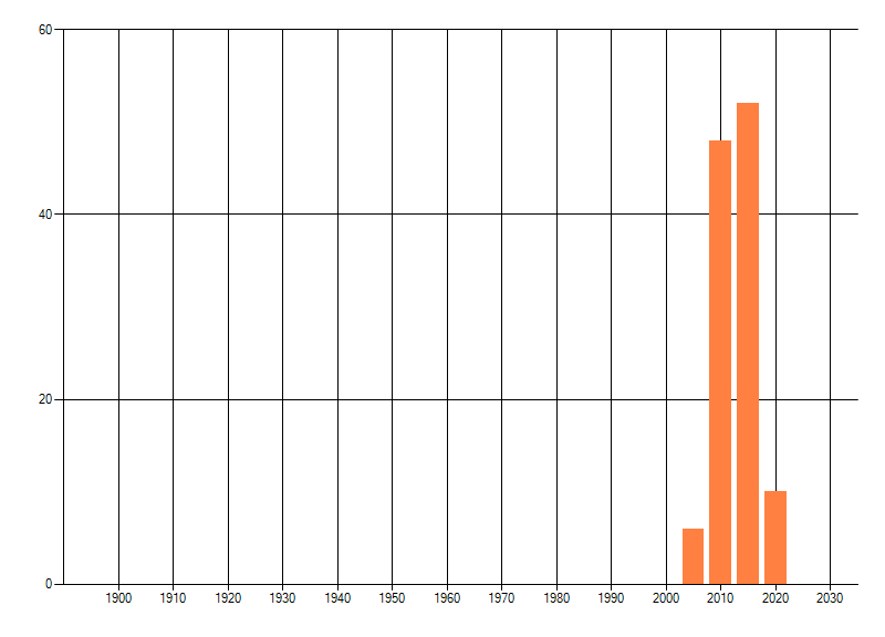 Het aantal atlasblokken (5x5 km) waarin de soort is gemeld binnen een periode van vijf jaar (vanaf 1980) of twintig jaar. Niet gecorrigeerd voor waarnemersinspanning en het aantal doorgegeven waarnemingen kan sterk variëren per periode, dus een trend in verspreiding kan hier niet direct uit worden afgelezen. Het opgegeven jaartal is het eerste jaar van de periode. Bron: gevalideerde waarnemingen uit de NDFF.