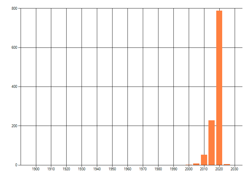 Het aantal atlasblokken (5x5 km) waarin de soort is gemeld binnen een periode van vijf jaar (vanaf 1980) of twintig jaar. Niet gecorrigeerd voor waarnemersinspanning en het aantal doorgegeven waarnemingen kan sterk variëren per periode, dus een trend in verspreiding kan hier niet direct uit worden afgelezen. Het opgegeven jaartal is het eerste jaar van de periode. Bron: gevalideerde waarnemingen uit de NDFF.