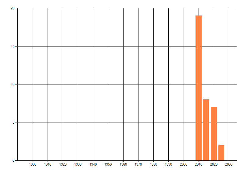 Het aantal atlasblokken (5x5 km) waarin de soort is gemeld binnen een periode van vijf jaar (vanaf 1980) of twintig jaar. Niet gecorrigeerd voor waarnemersinspanning en het aantal doorgegeven waarnemingen kan sterk variëren per periode, dus een trend in verspreiding kan hier niet direct uit worden afgelezen. Het opgegeven jaartal is het eerste jaar van de periode. Bron: gevalideerde waarnemingen uit de NDFF.