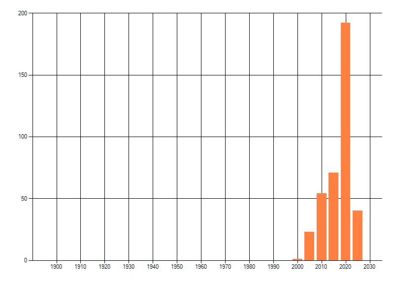 Het aantal atlasblokken (5x5 km) waarin de soort is gemeld binnen een periode van vijf jaar (vanaf 1980) of twintig jaar. Niet gecorrigeerd voor waarnemersinspanning en het aantal doorgegeven waarnemingen kan sterk variëren per periode, dus een trend in verspreiding kan hier niet direct uit worden afgelezen. Het opgegeven jaartal is het eerste jaar van de periode. Bron: gevalideerde waarnemingen uit de NDFF.