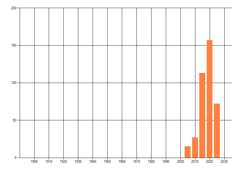 Het aantal atlasblokken (5x5 km) waarin de soort is gemeld binnen een periode van vijf jaar (vanaf 1980) of twintig jaar. Niet gecorrigeerd voor waarnemersinspanning en het aantal doorgegeven waarnemingen kan sterk variëren per periode, dus een trend in verspreiding kan hier niet direct uit worden afgelezen. Het opgegeven jaartal is het eerste jaar van de periode. Bron: gevalideerde waarnemingen uit de NDFF.
