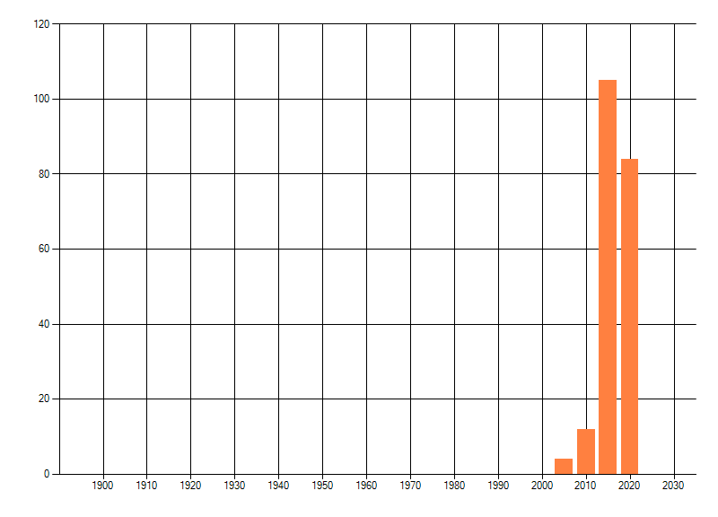 Het aantal atlasblokken (5x5 km) waarin de soort is gemeld binnen een periode van vijf jaar (vanaf 1980) of twintig jaar. Niet gecorrigeerd voor waarnemersinspanning en het aantal doorgegeven waarnemingen kan sterk variëren per periode, dus een trend in verspreiding kan hier niet direct uit worden afgelezen. Het opgegeven jaartal is het eerste jaar van de periode. Bron: gevalideerde waarnemingen uit de NDFF.