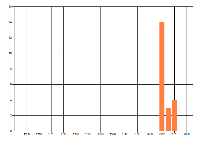 Het aantal atlasblokken (5x5 km) waarin de soort is gemeld binnen een periode van vijf jaar (vanaf 1980) of twintig jaar. Niet gecorrigeerd voor waarnemersinspanning en het aantal doorgegeven waarnemingen kan sterk variëren per periode, dus een trend in verspreiding kan hier niet direct uit worden afgelezen. Het opgegeven jaartal is het eerste jaar van de periode. Bron: gevalideerde waarnemingen uit de NDFF.