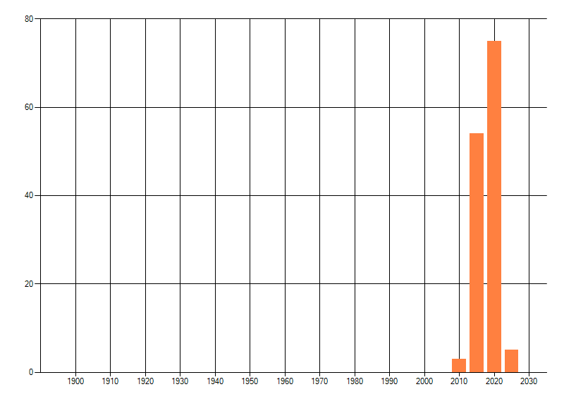 Het aantal atlasblokken (5x5 km) waarin de soort is gemeld binnen een periode van vijf jaar (vanaf 1980) of twintig jaar. Niet gecorrigeerd voor waarnemersinspanning en het aantal doorgegeven waarnemingen kan sterk variëren per periode, dus een trend in verspreiding kan hier niet direct uit worden afgelezen. Het opgegeven jaartal is het eerste jaar van de periode. Bron: gevalideerde waarnemingen uit de NDFF.