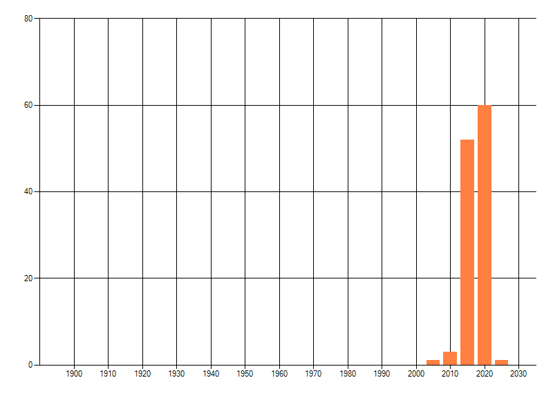 Het aantal atlasblokken (5x5 km) waarin de soort is gemeld binnen een periode van vijf jaar (vanaf 1980) of twintig jaar. Niet gecorrigeerd voor waarnemersinspanning en het aantal doorgegeven waarnemingen kan sterk variëren per periode, dus een trend in verspreiding kan hier niet direct uit worden afgelezen. Het opgegeven jaartal is het eerste jaar van de periode. Bron: gevalideerde waarnemingen uit de NDFF.
