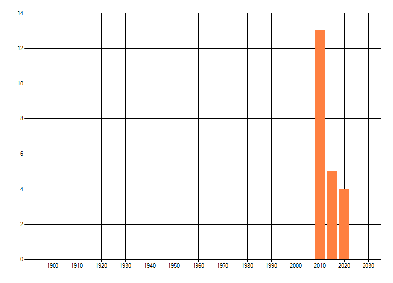 Het aantal atlasblokken (5x5 km) waarin de soort is gemeld binnen een periode van vijf jaar (vanaf 1980) of twintig jaar. Niet gecorrigeerd voor waarnemersinspanning en het aantal doorgegeven waarnemingen kan sterk variëren per periode, dus een trend in verspreiding kan hier niet direct uit worden afgelezen. Het opgegeven jaartal is het eerste jaar van de periode. Bron: gevalideerde waarnemingen uit de NDFF.