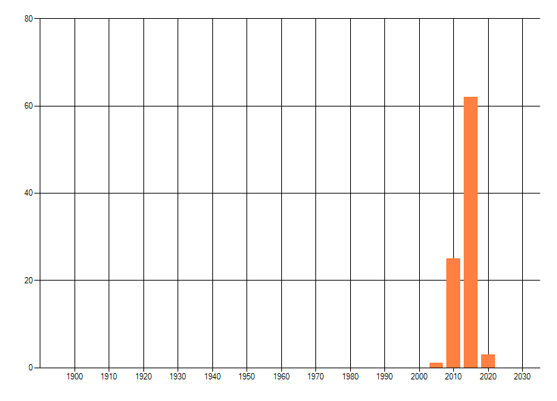 Het aantal atlasblokken (5x5 km) waarin de soort is gemeld binnen een periode van vijf jaar (vanaf 1980) of twintig jaar. Niet gecorrigeerd voor waarnemersinspanning en het aantal doorgegeven waarnemingen kan sterk variëren per periode, dus een trend in verspreiding kan hier niet direct uit worden afgelezen. Het opgegeven jaartal is het eerste jaar van de periode. Bron: gevalideerde waarnemingen uit de NDFF.