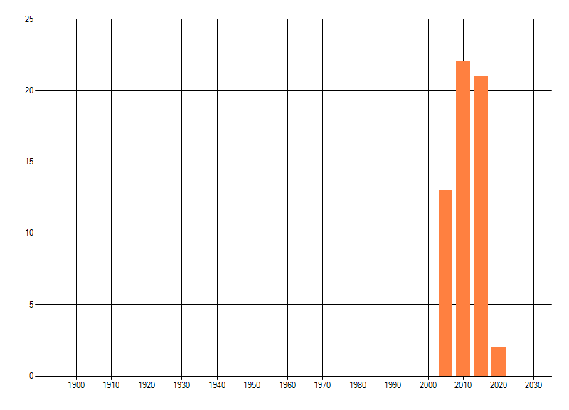 Het aantal atlasblokken (5x5 km) waarin de soort is gemeld binnen een periode van vijf jaar (vanaf 1980) of twintig jaar. Niet gecorrigeerd voor waarnemersinspanning en het aantal doorgegeven waarnemingen kan sterk variëren per periode, dus een trend in verspreiding kan hier niet direct uit worden afgelezen. Het opgegeven jaartal is het eerste jaar van de periode. Bron: gevalideerde waarnemingen uit de NDFF.