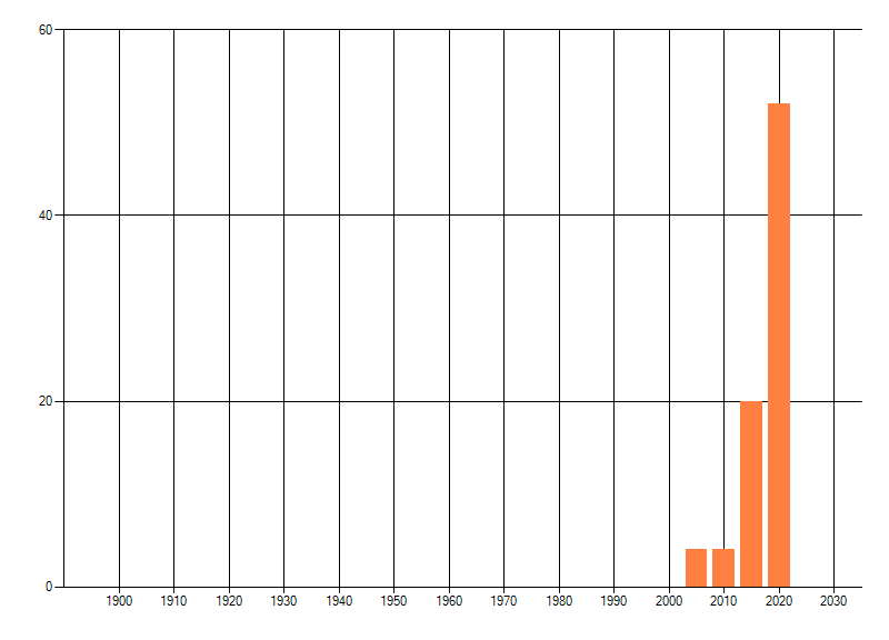 Het aantal atlasblokken (5x5 km) waarin de soort is gemeld binnen een periode van vijf jaar (vanaf 1980) of twintig jaar. Niet gecorrigeerd voor waarnemersinspanning en het aantal doorgegeven waarnemingen kan sterk variëren per periode, dus een trend in verspreiding kan hier niet direct uit worden afgelezen. Het opgegeven jaartal is het eerste jaar van de periode. Bron: gevalideerde waarnemingen uit de NDFF.