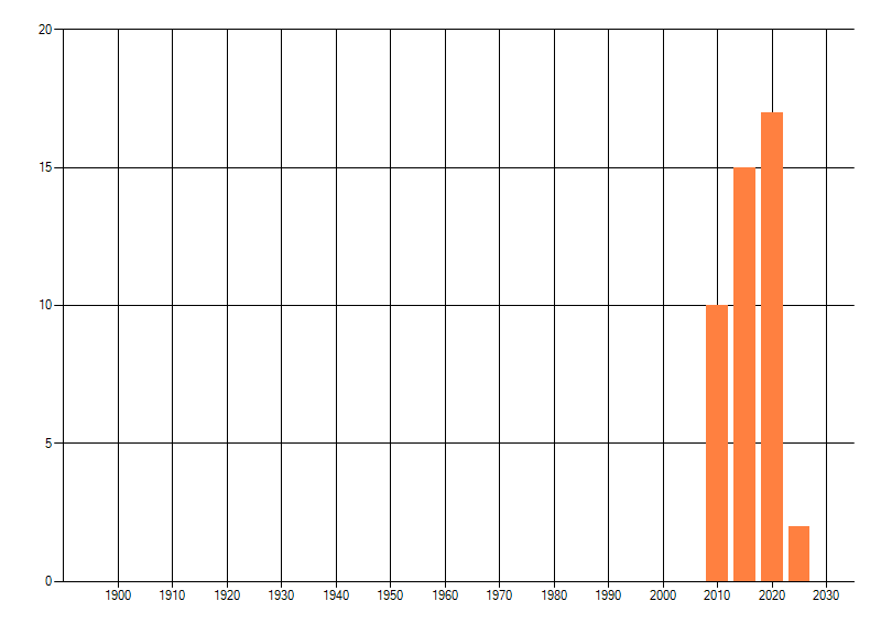 Het aantal atlasblokken (5x5 km) waarin de soort is gemeld binnen een periode van vijf jaar (vanaf 1980) of twintig jaar. Niet gecorrigeerd voor waarnemersinspanning en het aantal doorgegeven waarnemingen kan sterk variëren per periode, dus een trend in verspreiding kan hier niet direct uit worden afgelezen. Het opgegeven jaartal is het eerste jaar van de periode. Bron: gevalideerde waarnemingen uit de NDFF.