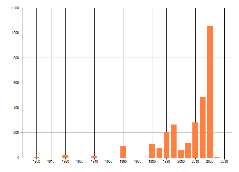 Het aantal atlasblokken (5x5 km) waarin de soort is gemeld binnen een periode van vijf jaar (vanaf 1980) of twintig jaar. Niet gecorrigeerd voor waarnemersinspanning en het aantal doorgegeven waarnemingen kan sterk variëren per periode, dus een trend in verspreiding kan hier niet direct uit worden afgelezen. Het opgegeven jaartal is het eerste jaar van de periode. Bron: gevalideerde waarnemingen uit de NDFF.
