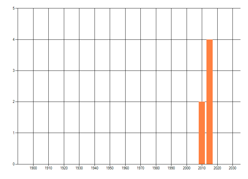 Het aantal atlasblokken (5x5 km) waarin de soort is gemeld binnen een periode van vijf jaar (vanaf 1980) of twintig jaar. Niet gecorrigeerd voor waarnemersinspanning en het aantal doorgegeven waarnemingen kan sterk variëren per periode, dus een trend in verspreiding kan hier niet direct uit worden afgelezen. Het opgegeven jaartal is het eerste jaar van de periode. Bron: gevalideerde waarnemingen uit de NDFF.