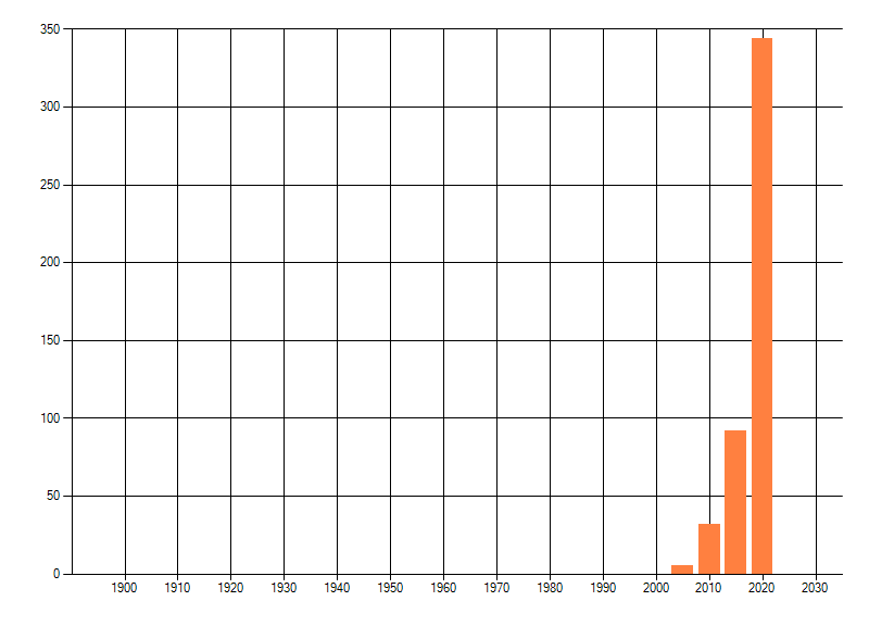 Het aantal atlasblokken (5x5 km) waarin de soort is gemeld binnen een periode van vijf jaar (vanaf 1980) of twintig jaar. Niet gecorrigeerd voor waarnemersinspanning en het aantal doorgegeven waarnemingen kan sterk variëren per periode, dus een trend in verspreiding kan hier niet direct uit worden afgelezen. Het opgegeven jaartal is het eerste jaar van de periode. Bron: gevalideerde waarnemingen uit de NDFF.