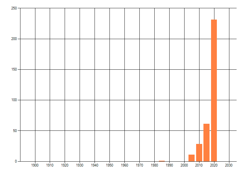 Het aantal atlasblokken (5x5 km) waarin de soort is gemeld binnen een periode van vijf jaar (vanaf 1980) of twintig jaar. Niet gecorrigeerd voor waarnemersinspanning en het aantal doorgegeven waarnemingen kan sterk variëren per periode, dus een trend in verspreiding kan hier niet direct uit worden afgelezen. Het opgegeven jaartal is het eerste jaar van de periode. Bron: gevalideerde waarnemingen uit de NDFF.