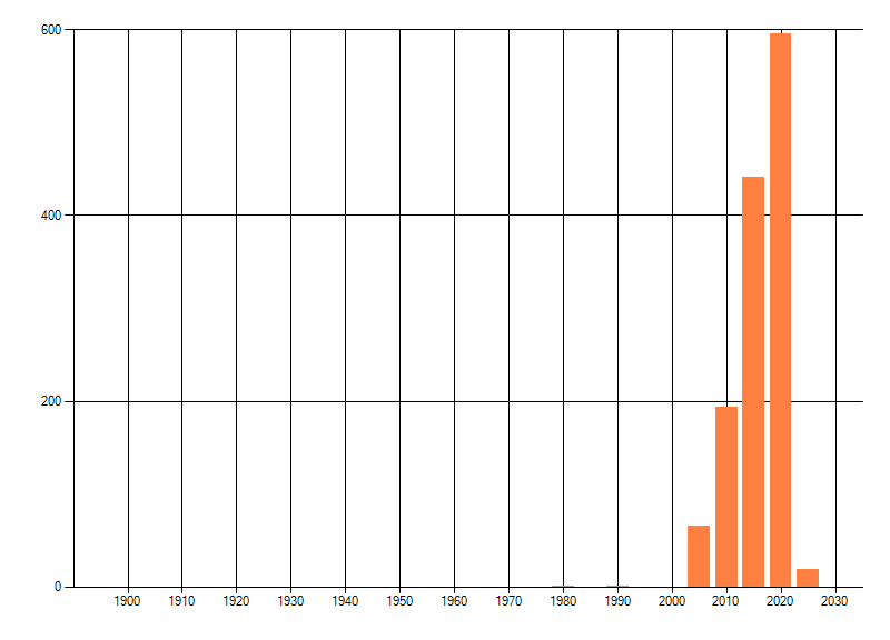Het aantal atlasblokken (5x5 km) waarin de soort is gemeld binnen een periode van vijf jaar (vanaf 1980) of twintig jaar. Niet gecorrigeerd voor waarnemersinspanning en het aantal doorgegeven waarnemingen kan sterk variëren per periode, dus een trend in verspreiding kan hier niet direct uit worden afgelezen. Het opgegeven jaartal is het eerste jaar van de periode. Bron: gevalideerde waarnemingen uit de NDFF.