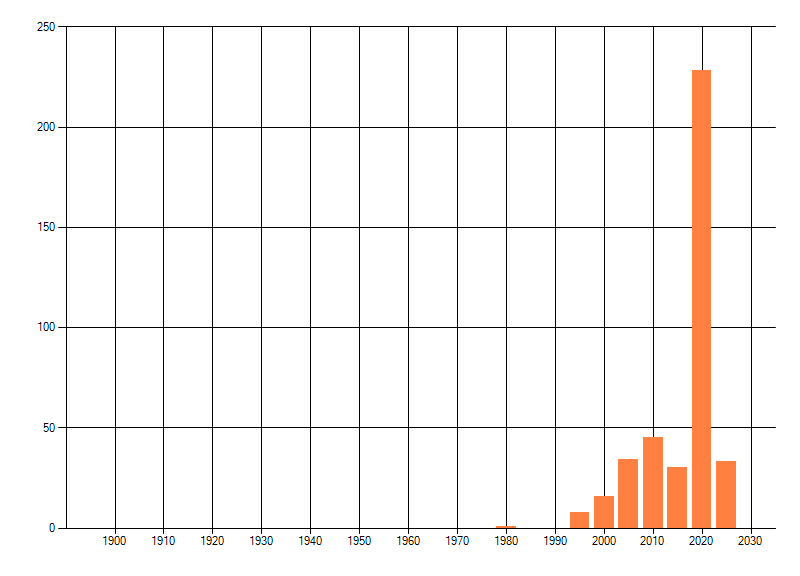 Het aantal atlasblokken (5x5 km) waarin de soort is gemeld binnen een periode van vijf jaar (vanaf 1980) of twintig jaar. Niet gecorrigeerd voor waarnemersinspanning en het aantal doorgegeven waarnemingen kan sterk variëren per periode, dus een trend in verspreiding kan hier niet direct uit worden afgelezen. Het opgegeven jaartal is het eerste jaar van de periode. Bron: gevalideerde waarnemingen uit de NDFF.