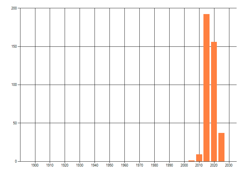 Het aantal atlasblokken (5x5 km) waarin de soort is gemeld binnen een periode van vijf jaar (vanaf 1980) of twintig jaar. Niet gecorrigeerd voor waarnemersinspanning en het aantal doorgegeven waarnemingen kan sterk variëren per periode, dus een trend in verspreiding kan hier niet direct uit worden afgelezen. Het opgegeven jaartal is het eerste jaar van de periode. Bron: gevalideerde waarnemingen uit de NDFF.