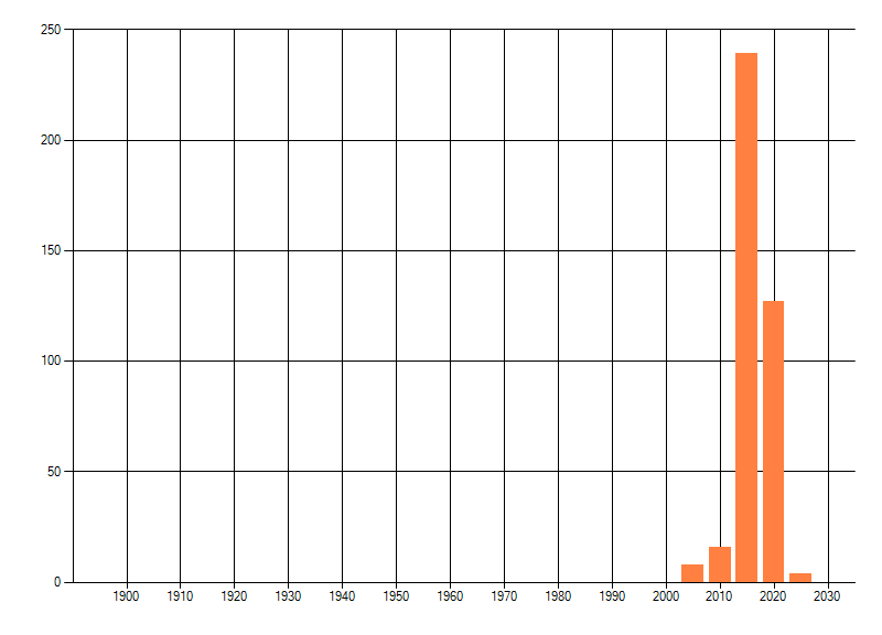 Het aantal atlasblokken (5x5 km) waarin de soort is gemeld binnen een periode van vijf jaar (vanaf 1980) of twintig jaar. Niet gecorrigeerd voor waarnemersinspanning en het aantal doorgegeven waarnemingen kan sterk variëren per periode, dus een trend in verspreiding kan hier niet direct uit worden afgelezen. Het opgegeven jaartal is het eerste jaar van de periode. Bron: gevalideerde waarnemingen uit de NDFF.