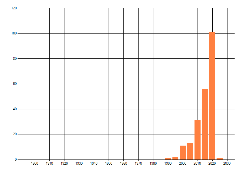 Het aantal atlasblokken (5x5 km) waarin de soort is gemeld binnen een periode van vijf jaar (vanaf 1980) of twintig jaar. Niet gecorrigeerd voor waarnemersinspanning en het aantal doorgegeven waarnemingen kan sterk variëren per periode, dus een trend in verspreiding kan hier niet direct uit worden afgelezen. Het opgegeven jaartal is het eerste jaar van de periode. Bron: gevalideerde waarnemingen uit de NDFF.