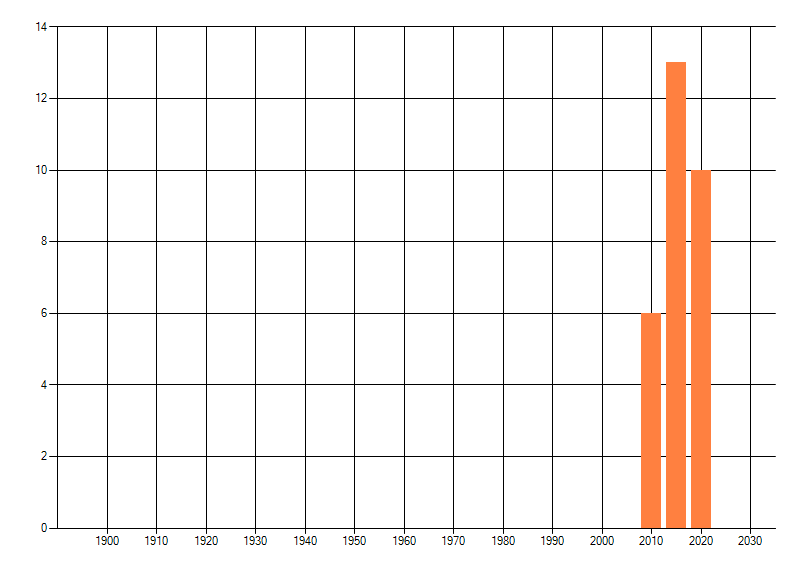 Het aantal atlasblokken (5x5 km) waarin de soort is gemeld binnen een periode van vijf jaar (vanaf 1980) of twintig jaar. Niet gecorrigeerd voor waarnemersinspanning en het aantal doorgegeven waarnemingen kan sterk variëren per periode, dus een trend in verspreiding kan hier niet direct uit worden afgelezen. Het opgegeven jaartal is het eerste jaar van de periode. Bron: gevalideerde waarnemingen uit de NDFF.