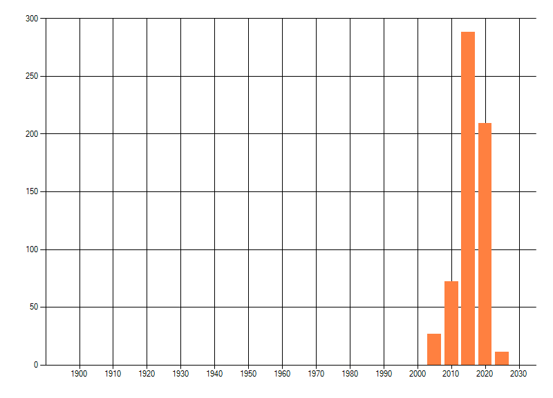 Het aantal atlasblokken (5x5 km) waarin de soort is gemeld binnen een periode van vijf jaar (vanaf 1980) of twintig jaar. Niet gecorrigeerd voor waarnemersinspanning en het aantal doorgegeven waarnemingen kan sterk variëren per periode, dus een trend in verspreiding kan hier niet direct uit worden afgelezen. Het opgegeven jaartal is het eerste jaar van de periode. Bron: gevalideerde waarnemingen uit de NDFF.