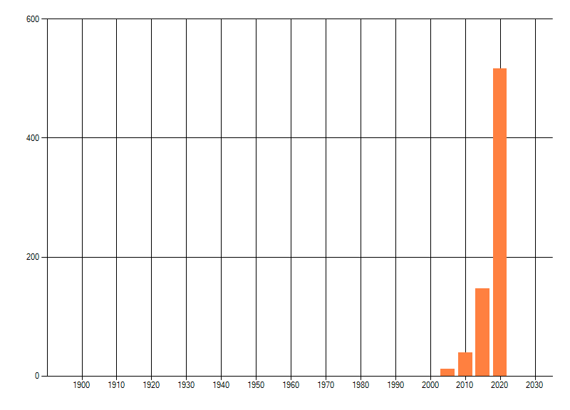 Het aantal atlasblokken (5x5 km) waarin de soort is gemeld binnen een periode van vijf jaar (vanaf 1980) of twintig jaar. Niet gecorrigeerd voor waarnemersinspanning en het aantal doorgegeven waarnemingen kan sterk variëren per periode, dus een trend in verspreiding kan hier niet direct uit worden afgelezen. Het opgegeven jaartal is het eerste jaar van de periode. Bron: gevalideerde waarnemingen uit de NDFF.